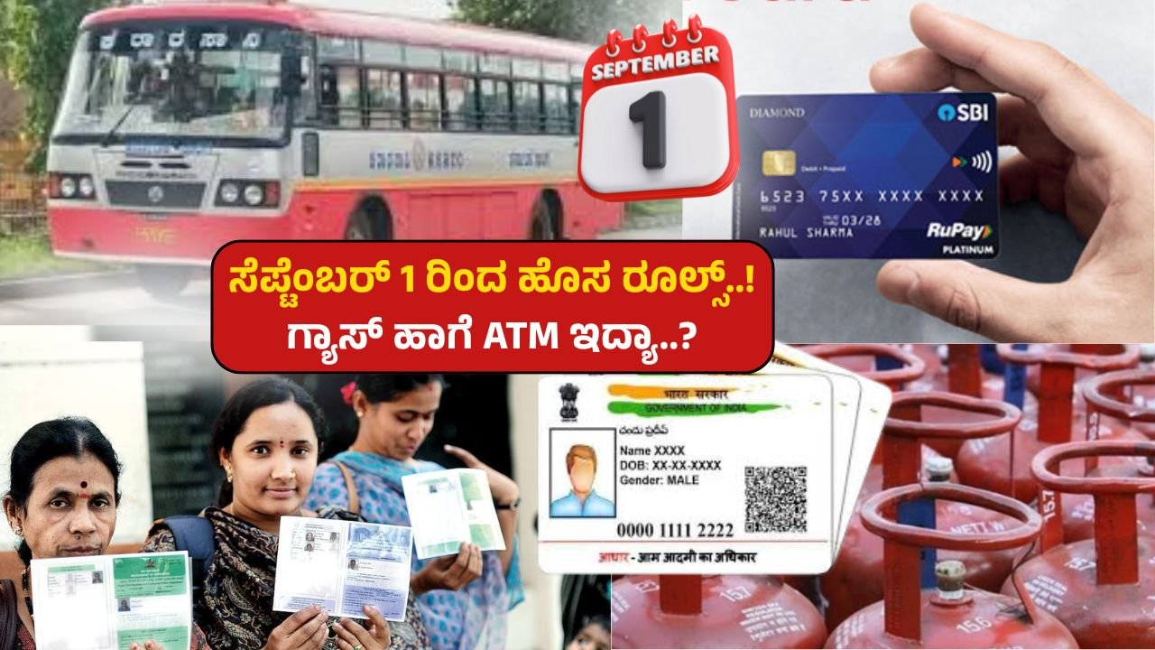 2025ರ ಸೆಪ್ಟೆಂಬರ್ 1ರಿಂದ ದೇಶದ ಹಣಕಾಸು ಹಾಗೂ ಬ್ಯಾಂಕಿಂಗ್ ವ್ಯವಸ್ಥೆಯಲ್ಲಿ ಹಲವು ಹೊಸ ನಿಯಮಗಳು ಜಾರಿಯಾಗಲಿವೆ. ಇವು ಸಾಮಾನ್ಯ ಜನರ ದೈನಂದಿನ ಆರ್ಥಿಕ ವ್ಯವಹಾರಗಳ ಮೇಲೆ ನೇರ ಪರಿಣಾಮ ಬೀರಲಿವೆ. ಸೆಪ್ಟೆಂಬರ್ 1ರಿಂದ ಹೊಸ ರೂಲ್ಸ್..! ಗ್ಯಾಸ್ ಹಾಗೆ ATM ಇದ್ಯಾ..? ಈ ಬದಲಾವಣೆಗಳ ಕುರಿತು ಸಂಪೂರ್ಣ ಮಾಹಿತಿ ಇಲ್ಲಿದೆ: